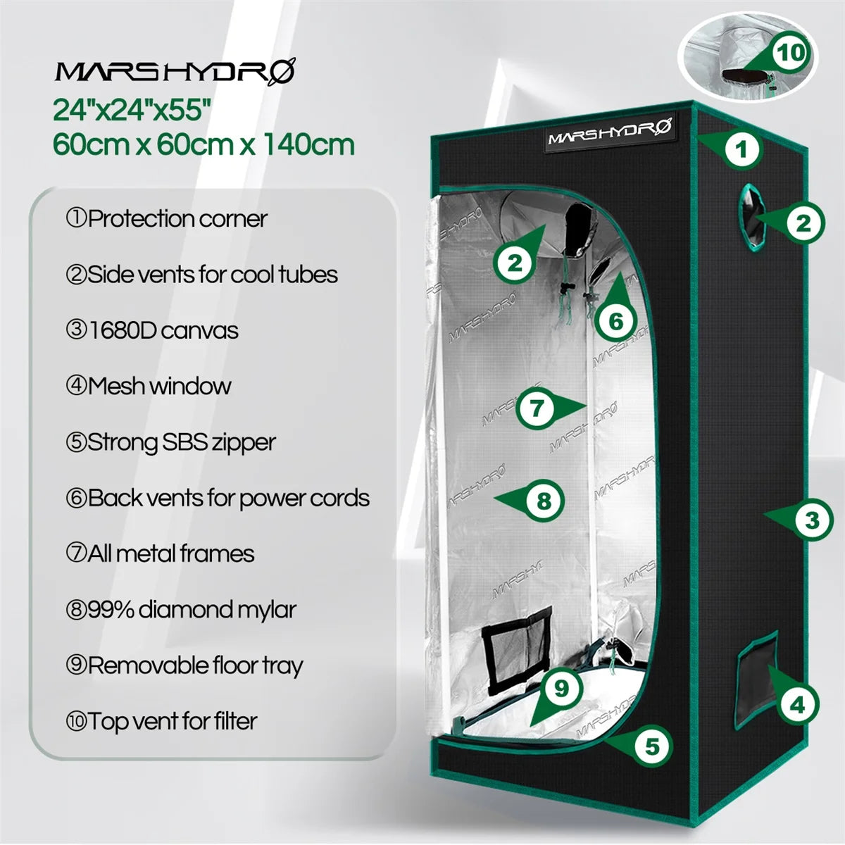 1680D Mars Hydro 60x60x140cm LED Grow Tent box Indoor Hydroponics garden Water-proof hut Diamond Reflective Mylar grow room